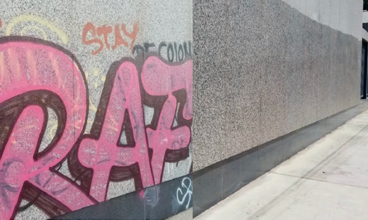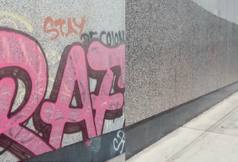 Precise removal of graffiti and surface stains while preserving the substrate. Clean finish, repaint-ready.